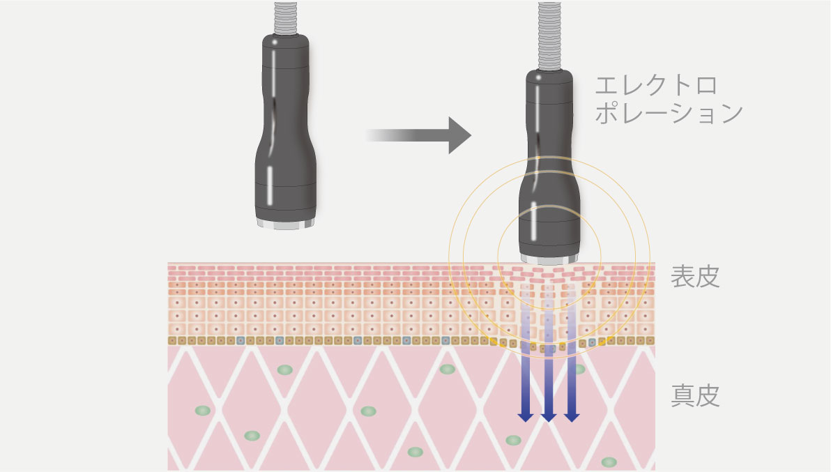 浸透できるため、イオン導入法と約20倍もの浸透効果の
